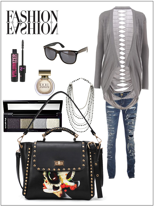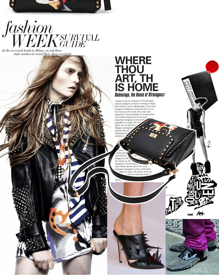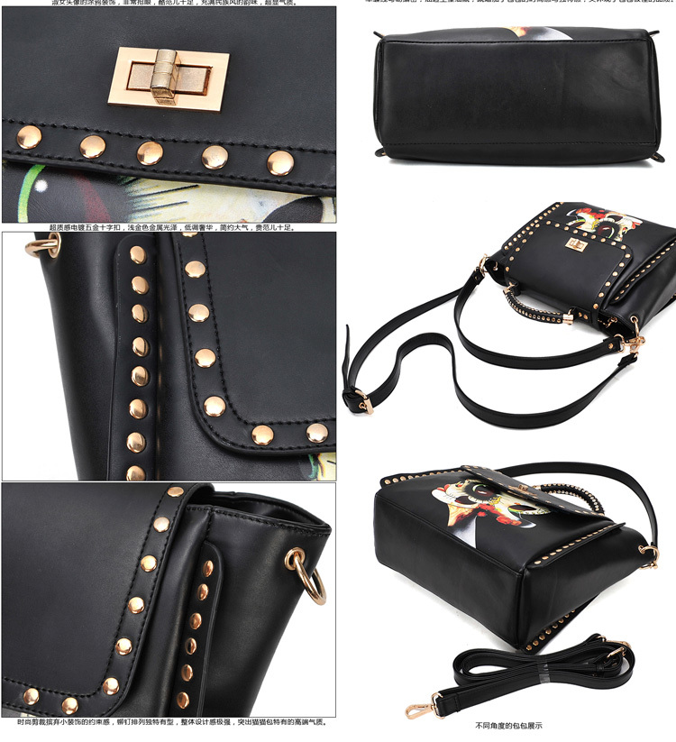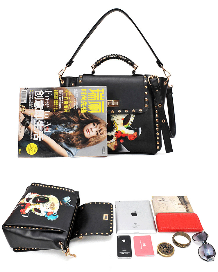 Chic 2013 fall/winter black studded handbag with cool print and 2 straps of different length.