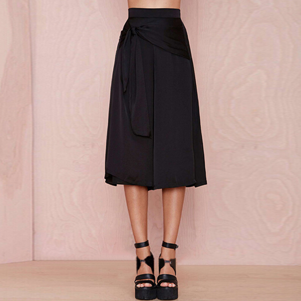 Hottest 2015 spring summer black high-waist wide-leg cropped culottes, best to pair with cropped/tucked-in tops for the trendiest look this year!