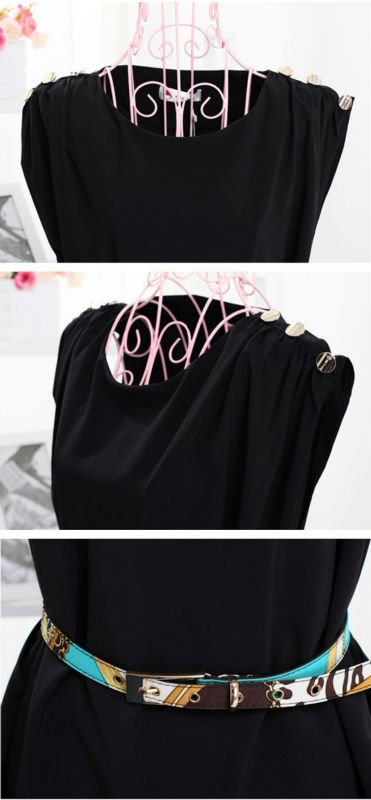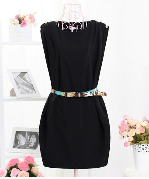 Chic sleeveless tunic dress with belt and buttons on shoulders available in 3 colors.