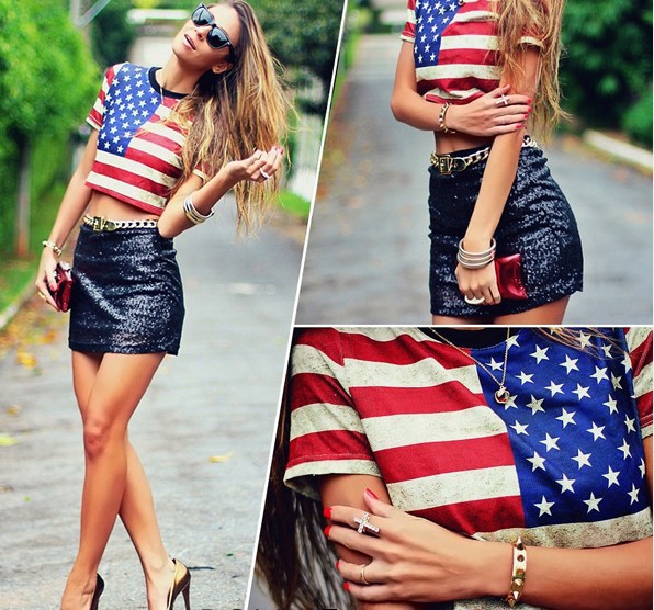 The hottest 2013 spring/summer style: Cropped tops! This sexy cropped American flag tee is just what you need to stand out this season!
