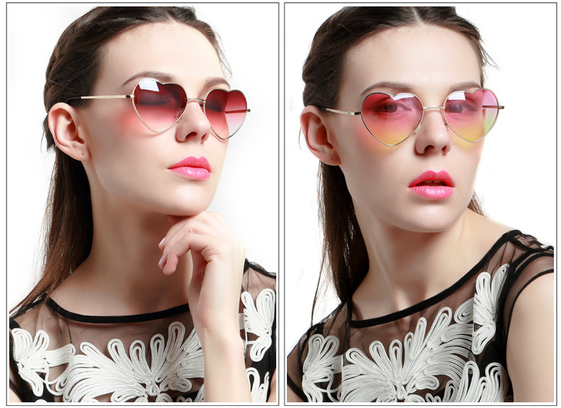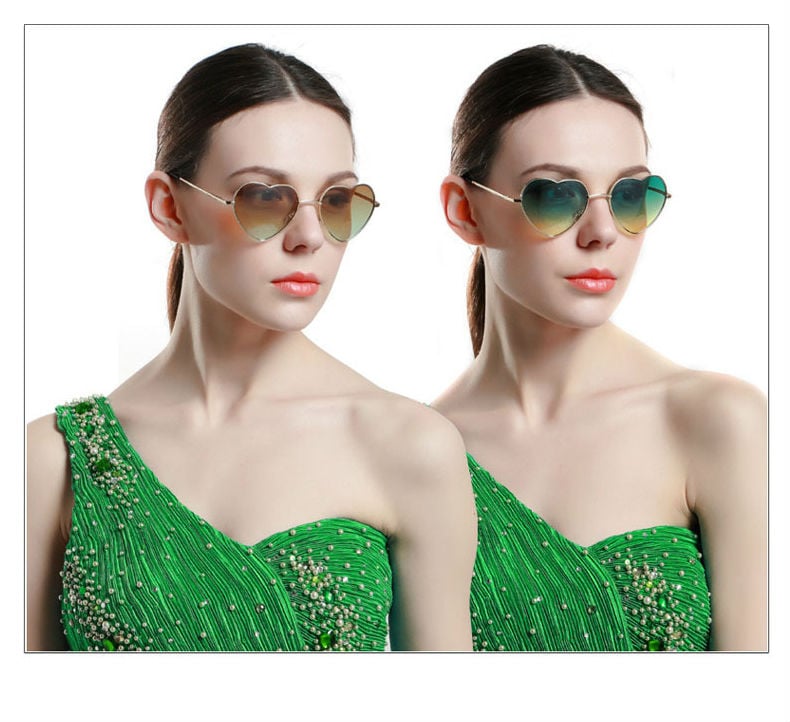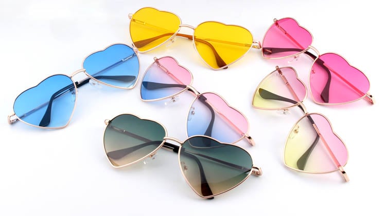 Funky heart shaped sunglasses with gold frame available in 6 choices of colored lenses.