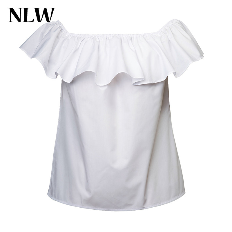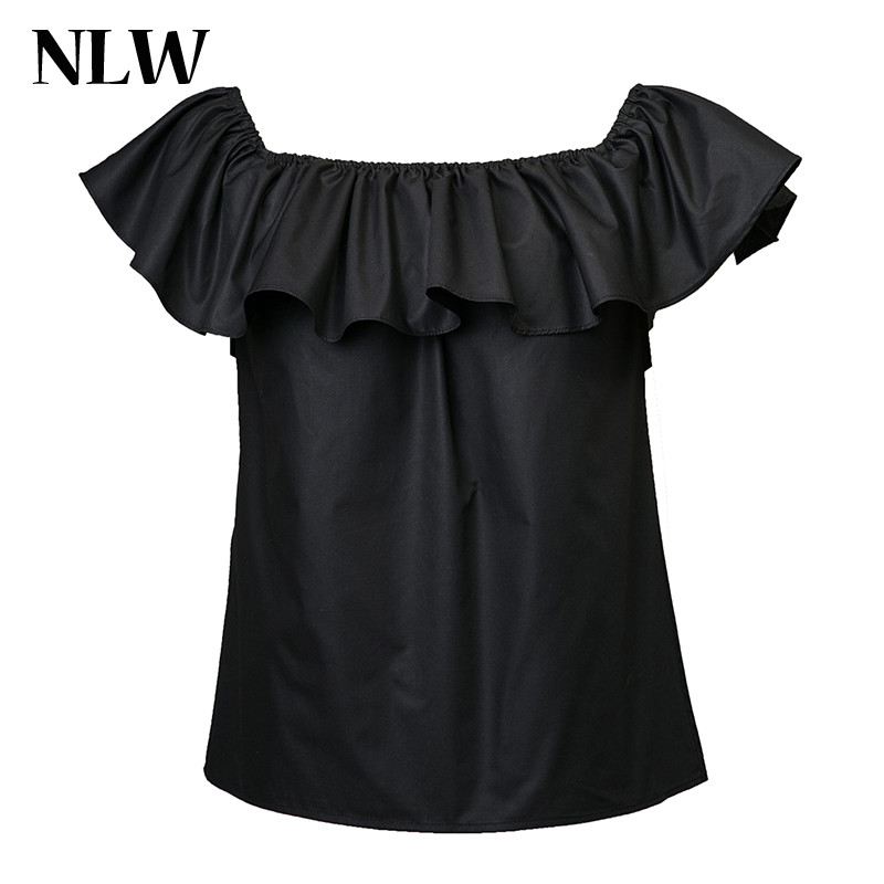 Hottest 2016 summer style - Off shoulder top with ruffle collar in white and black.