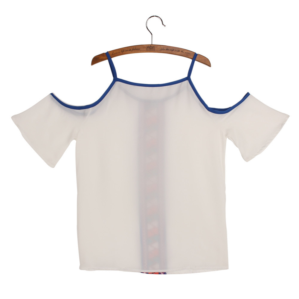Exotic Bohemian style chiffon cold shoulder top with straps.
