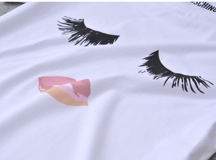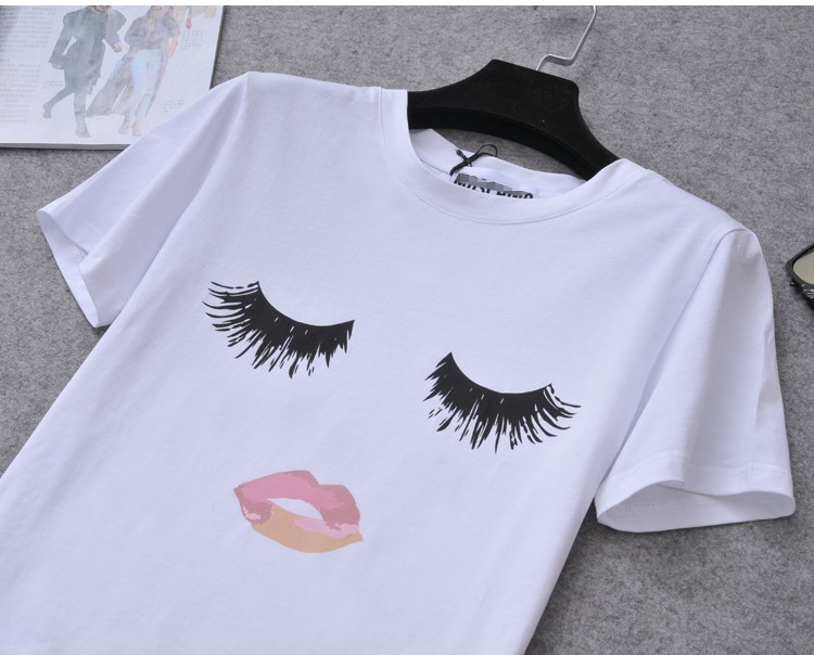 Really cool and funny eyelash and lip print short sleeve summer ladies t shirt.