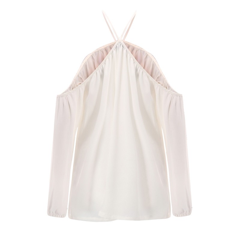 2017 Spring Summer Casual Long Sleeve Sexy Halter O-Neck Off Shoulder Chiffon Women Blouse for Great for Club Parties and Gatherings.