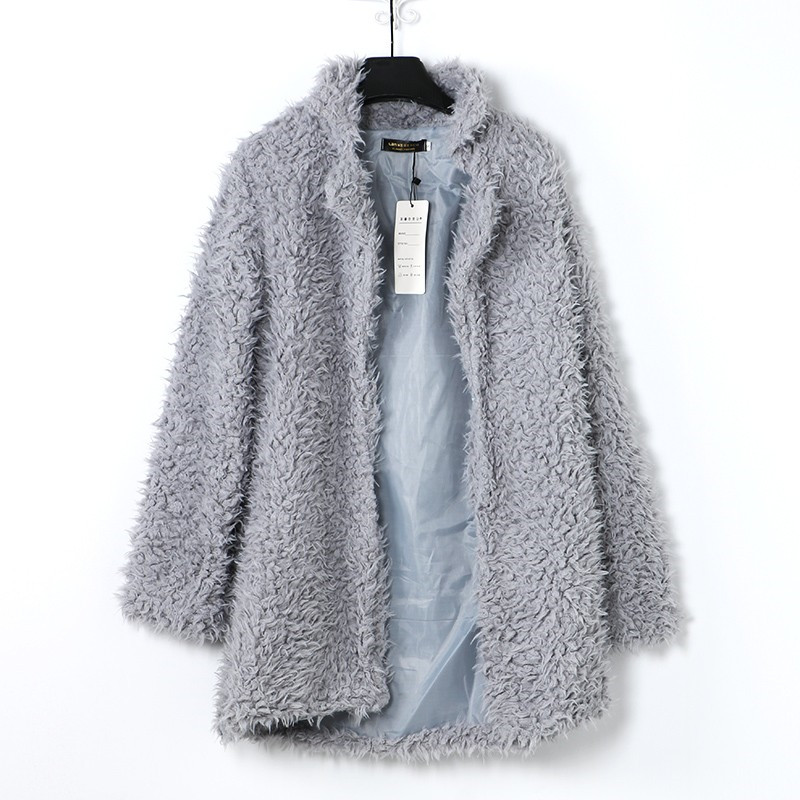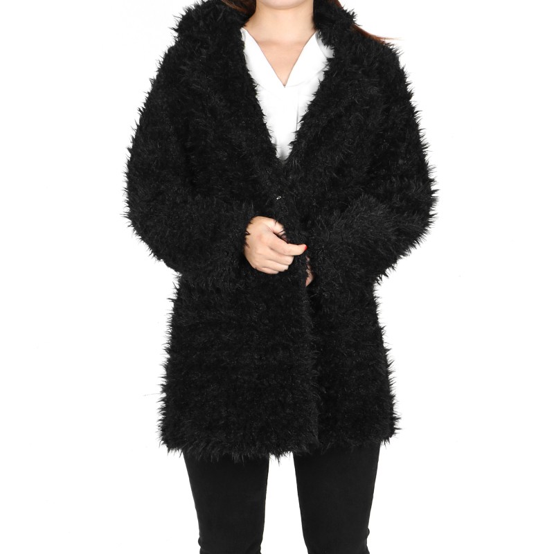 2018 Winter Mid length fluffy faux fur coat for a casual yet trendy look available in black, grey and pink.