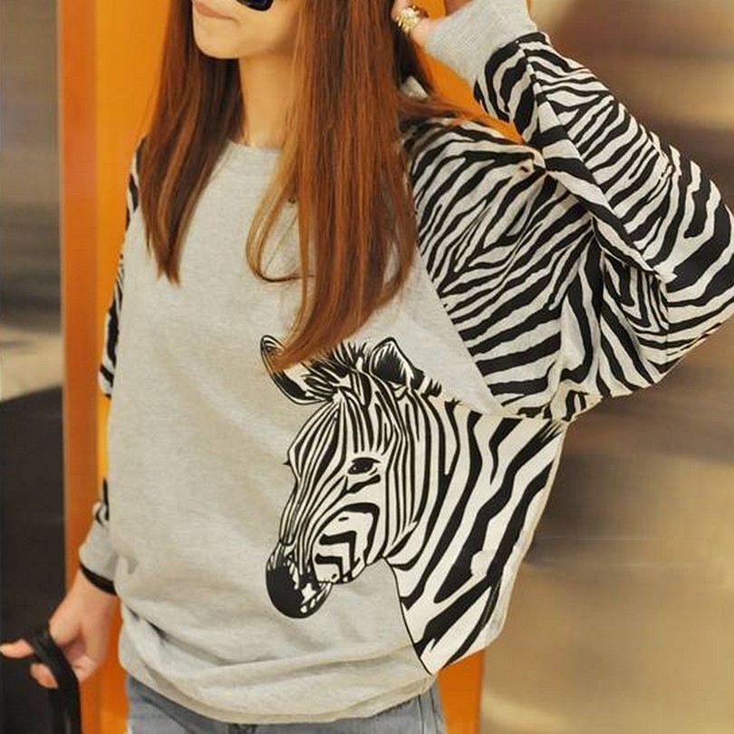 Relaxed long sleeve cotton pullover sweatshirt with zebra print.