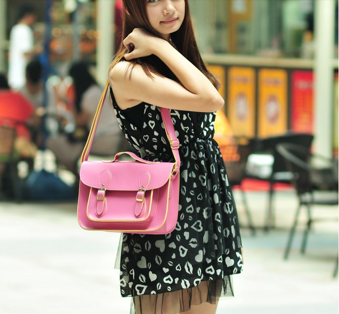 Hot 2014 spring/summer candy color satchel messenger bag available in 5 colors.