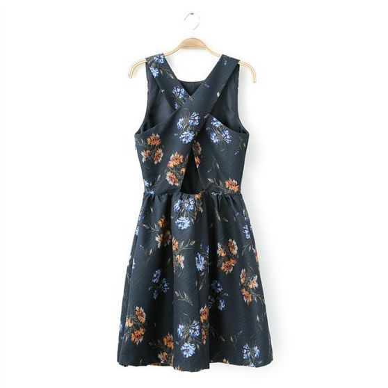 Brand new 2014 spring/summer navy floral sleeveless mini dress with cross strap back.