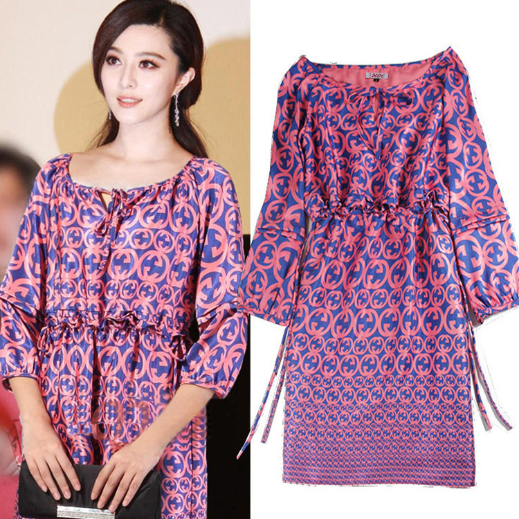 Elegant pink silk twill print dress with elastic waist, three-quarter sleeves and just above the knee length. Length Shoulder Bust Small: 88cm 55cm 92cm Medium 88cm 55cm 97cm Large 90cm 56cm 104cm